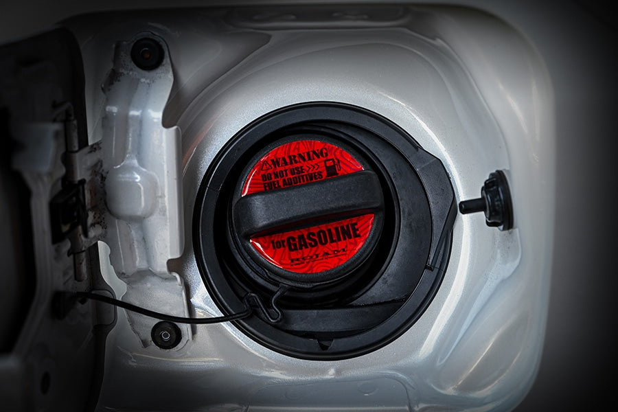 ●フューエルキャップに貼り付けるだけで、給油口廻りを華やかに彩る。